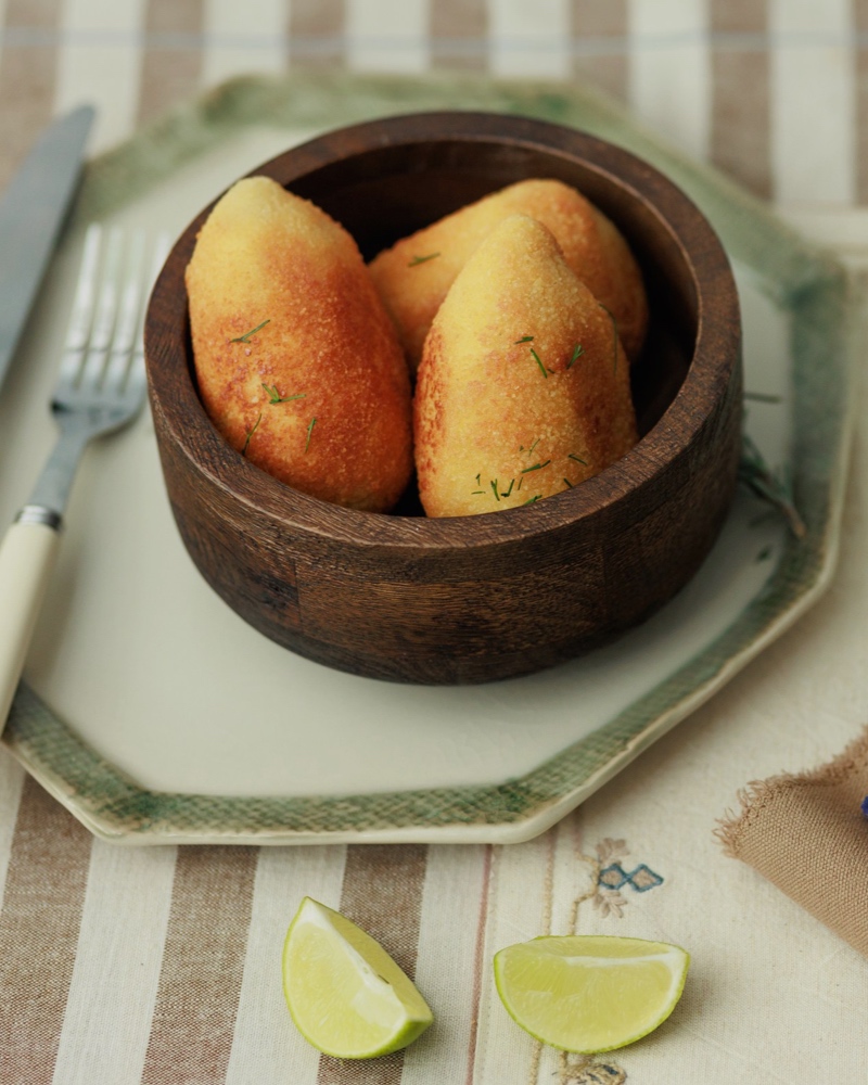 In der Pfanne & Backofen / Airfryer: Gefroren auf einer Pfanne mit Öl von allen Seiten bei kleiner bis mittlerer Hitze ca. 10 min. goldbraun anbraten. Anschließend im Backofen oder im Airfryer bei 180 °C ca. 15 min. fertigbacken.